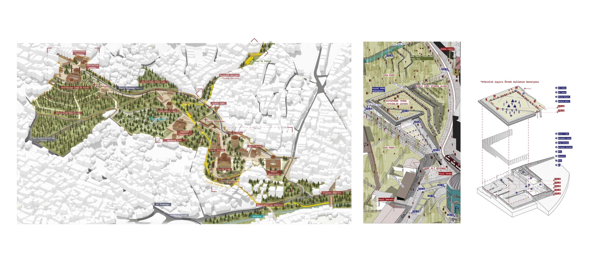 Önerdiğimiz yayalaştırma stratejisi ve tarihi odağın tanımlanmasının ardından, bu alanların kentle ve birbirleriyle kuracağı alternatif ilişkileri ele alarak devam ettik. Bu arayışların, bir sonraki adımda alacağımız kamulaştırma kararlarına önemli bir tutarlılık zemini sağlayacağını düşünüyoruz.