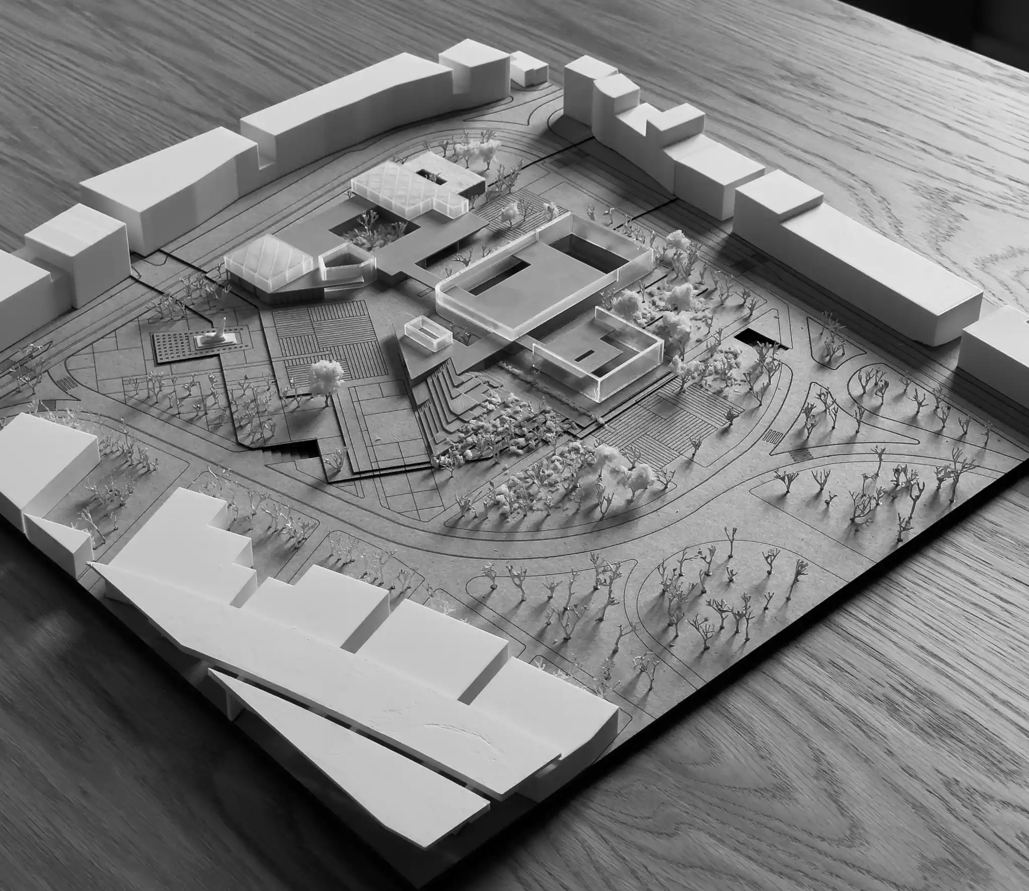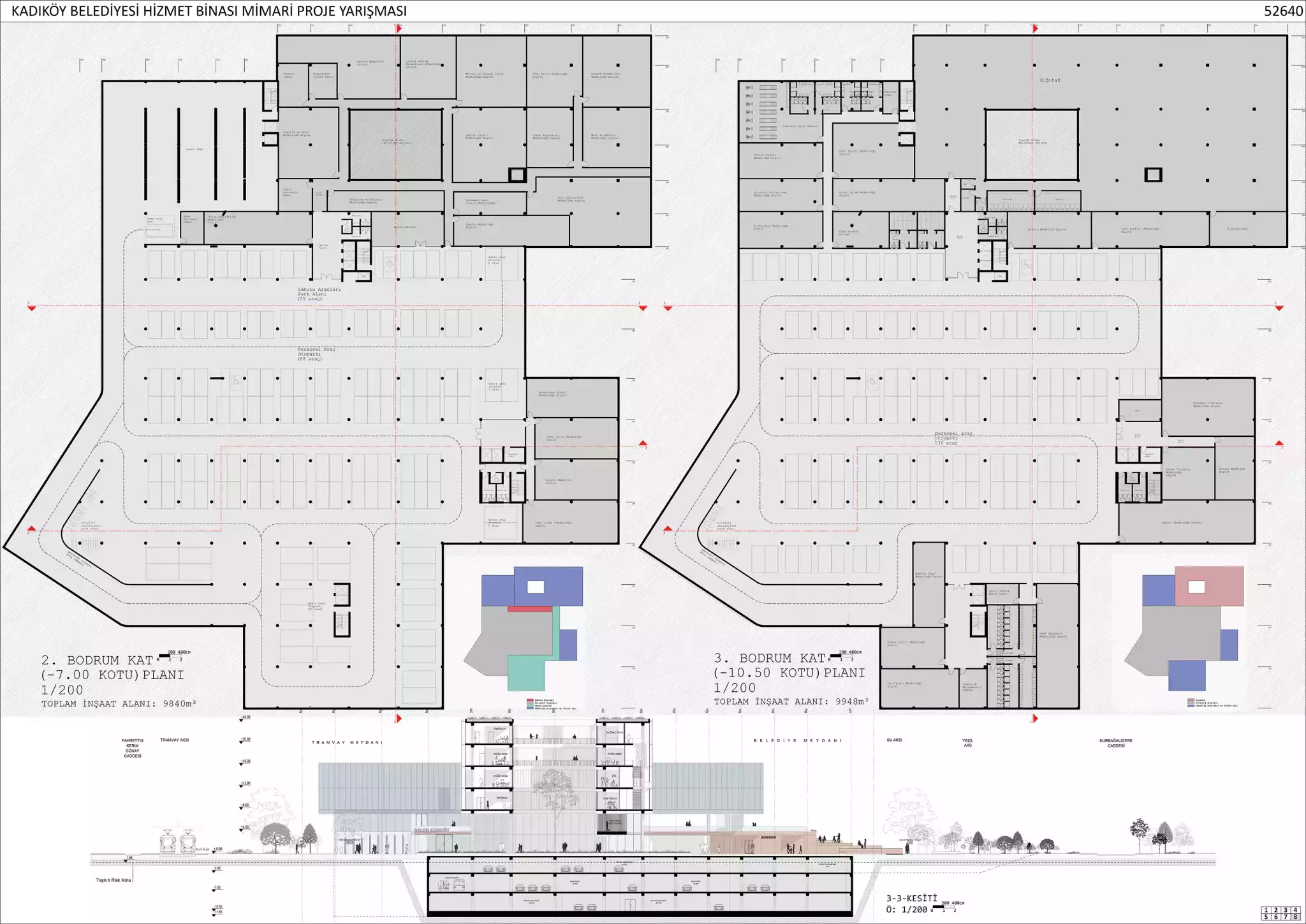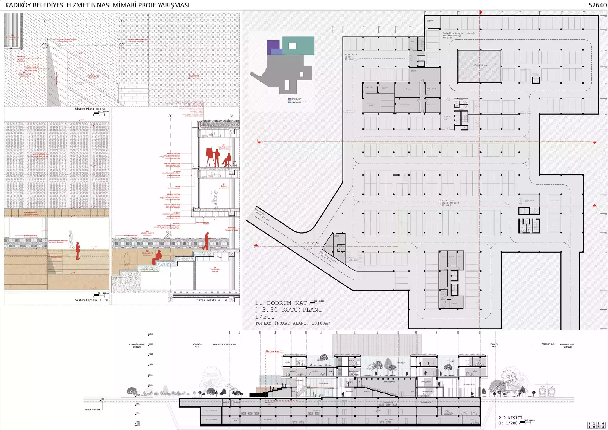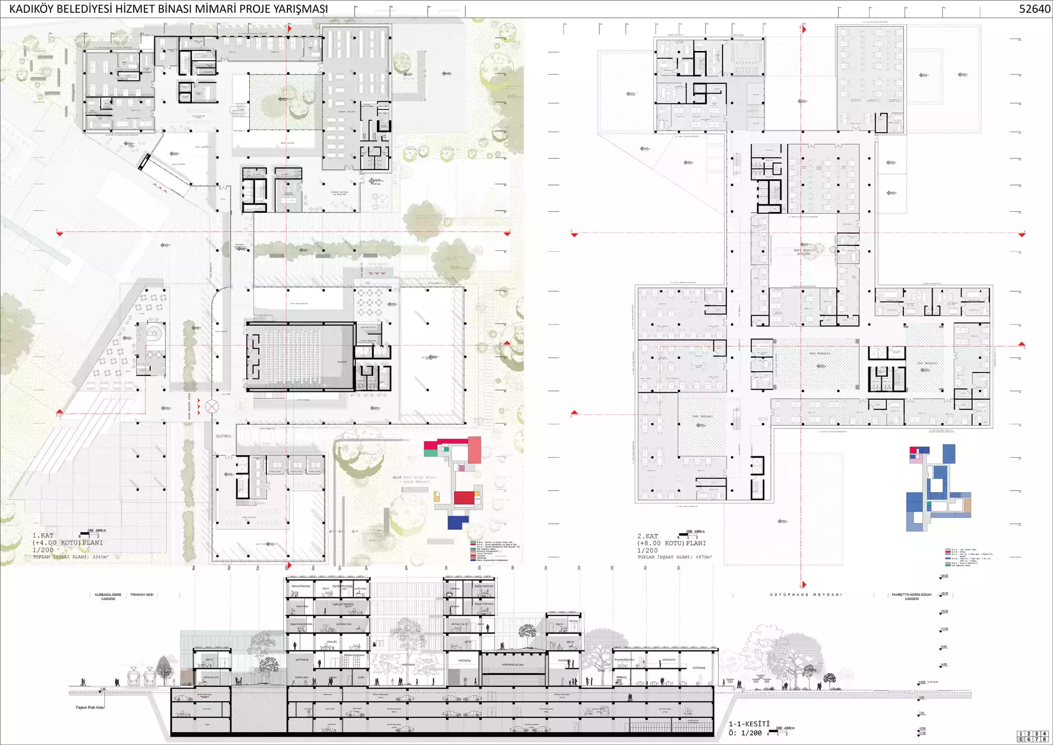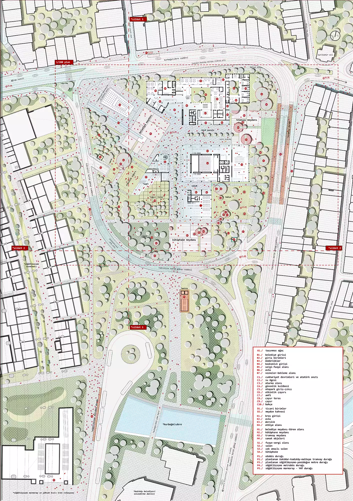 Kadıköy Belediyesi Hizmet Binası, hem mahalle hem de ilçe ölçeğinde önemli bir büyüklüğü tariflediği için, yapıya dair çözümlerimize geçmeden önce bahsettiğimiz kentsel nüvelerle ilişki kurma / onarma potansiyellerini aradık. Dolayısıyla doğru olanın bu kentsel sinir uçlarını bulmak ve önereceğimiz yapıyla kuracağı ilişkileri tarifleyerek kentsel yaşamı zenginleştirmek olduğunu düşünerek kararlarımızı aldığımızı söyleyebiliriz.