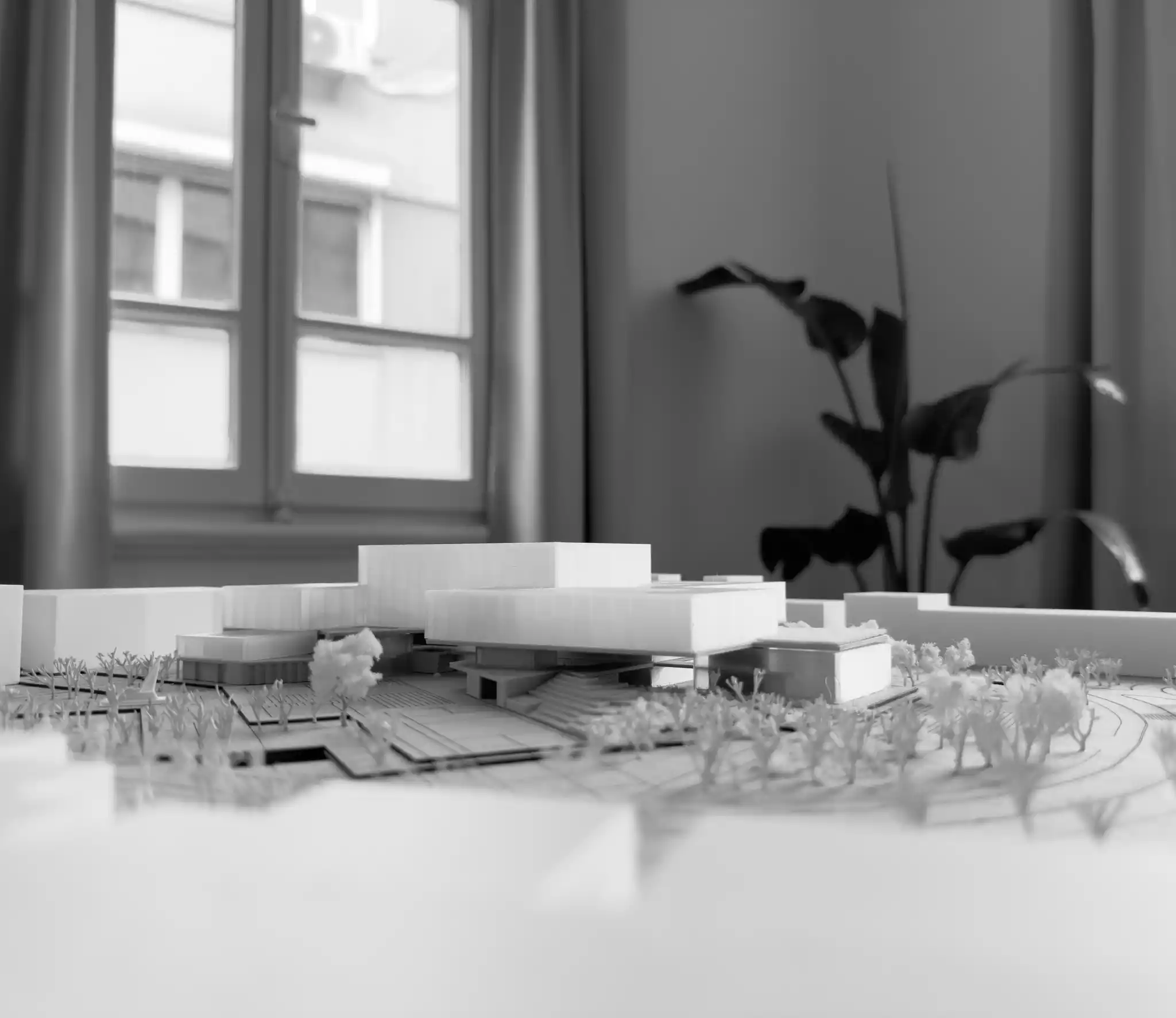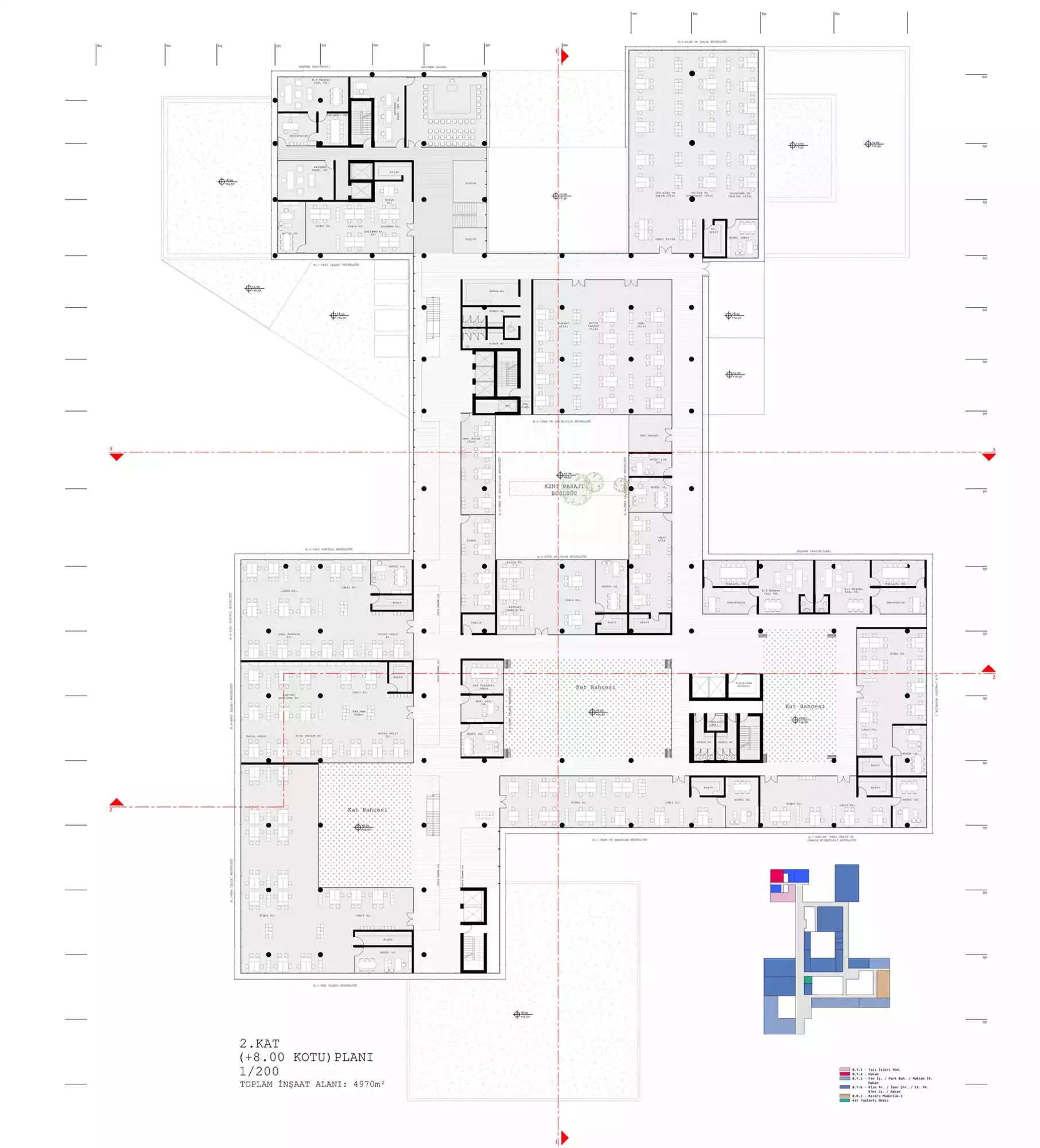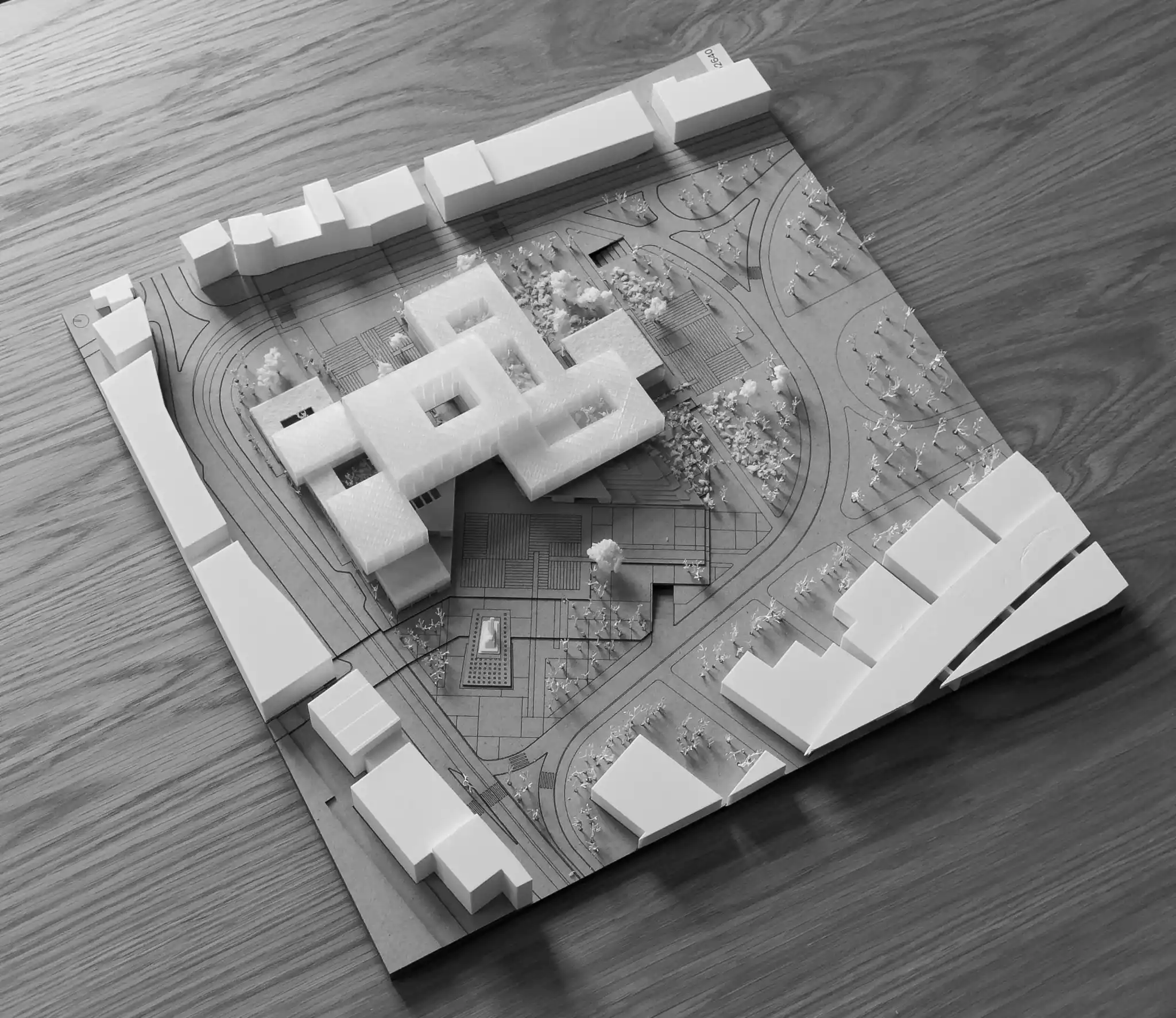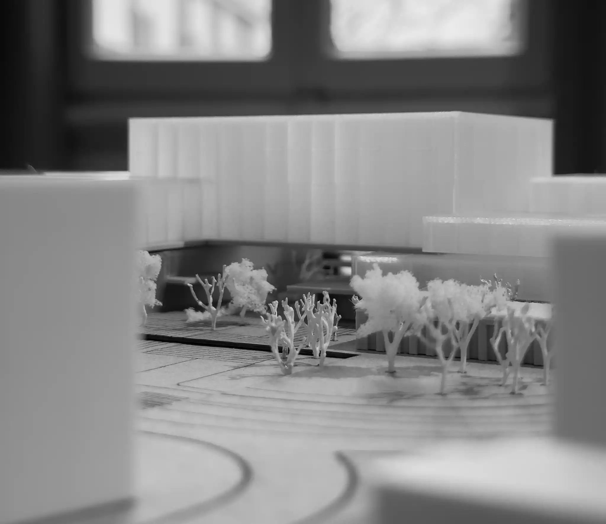 Kadıköy Belediyesi Hizmet Binası, hem mahalle hem de ilçe ölçeğinde önemli bir büyüklüğü tariflediği için, yapıya dair çözümlerimize geçmeden önce bahsettiğimiz kentsel nüvelerle ilişki kurma / onarma potansiyellerini aradık. Dolayısıyla doğru olanın bu kentsel sinir uçlarını bulmak ve önereceğimiz yapıyla kuracağı ilişkileri tarifleyerek kentsel yaşamı zenginleştirmek olduğunu düşünerek kararlarımızı aldığımızı söyleyebiliriz.