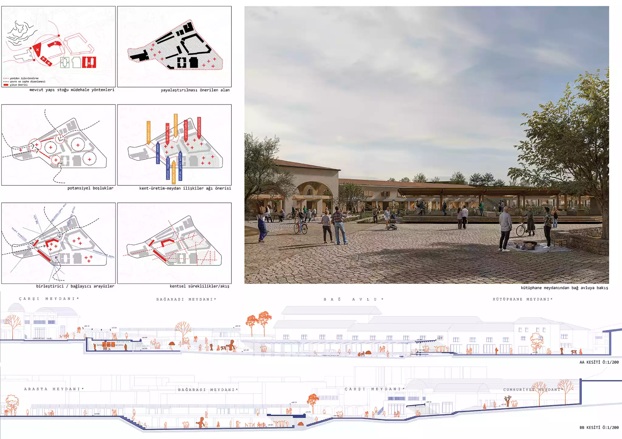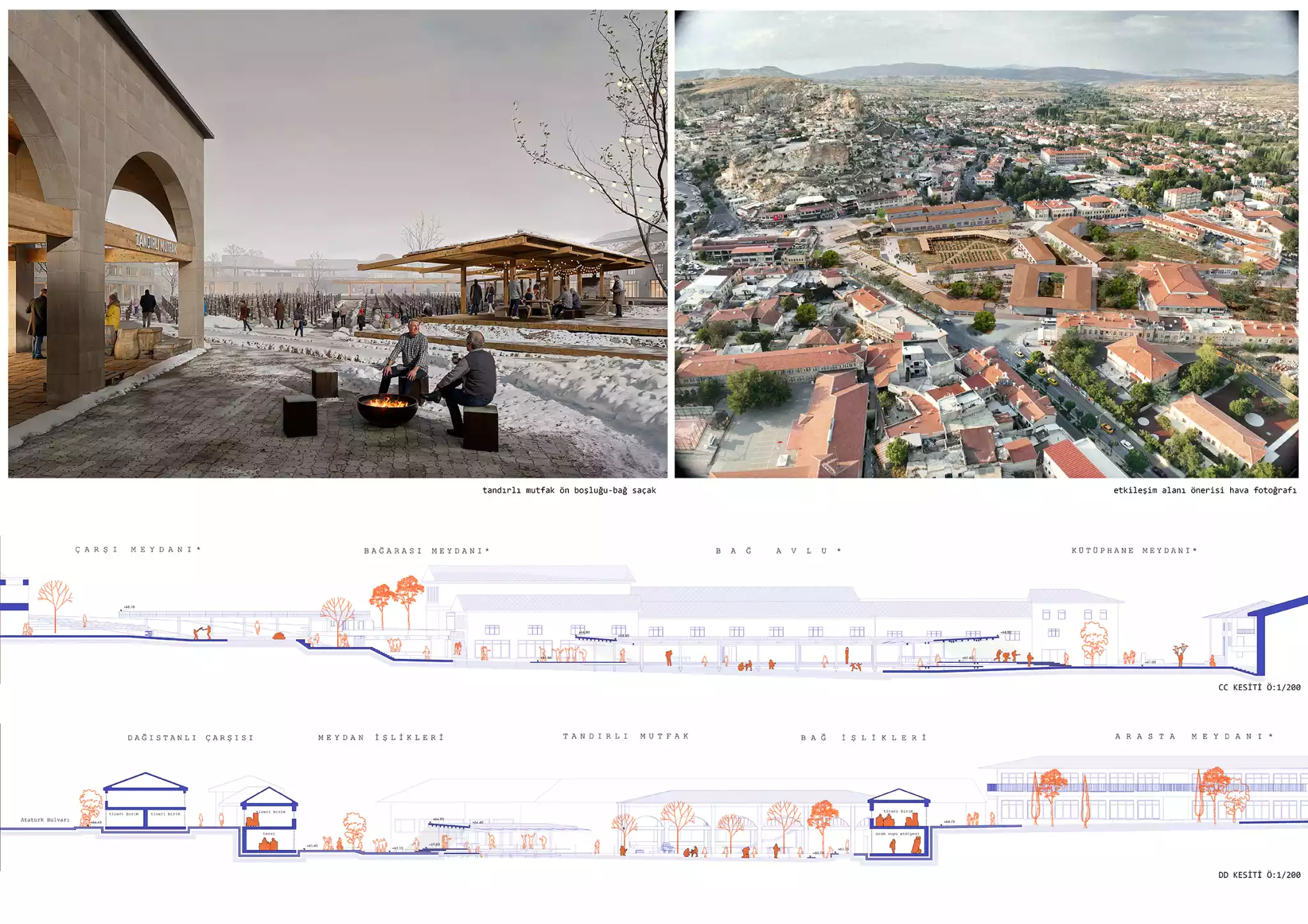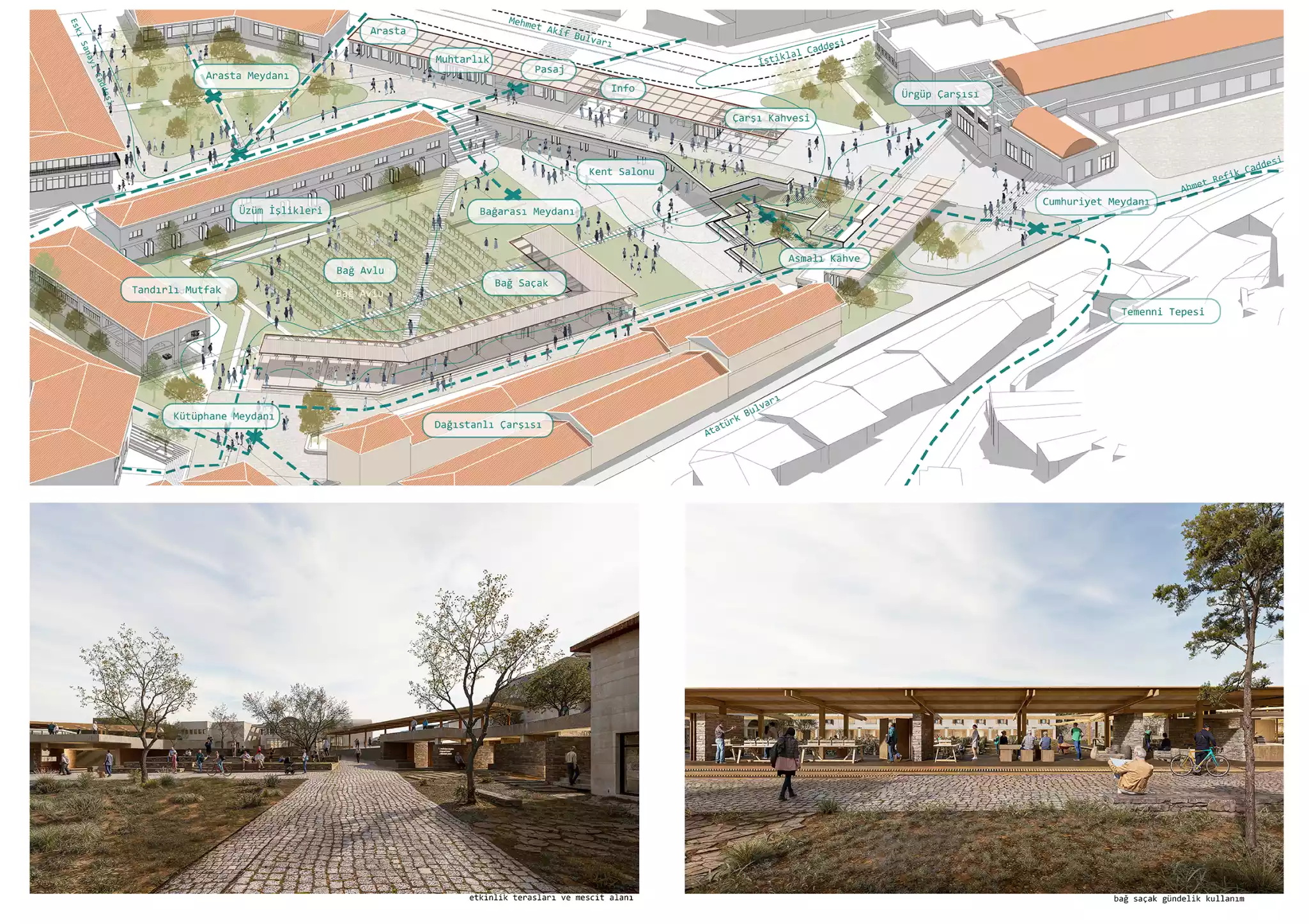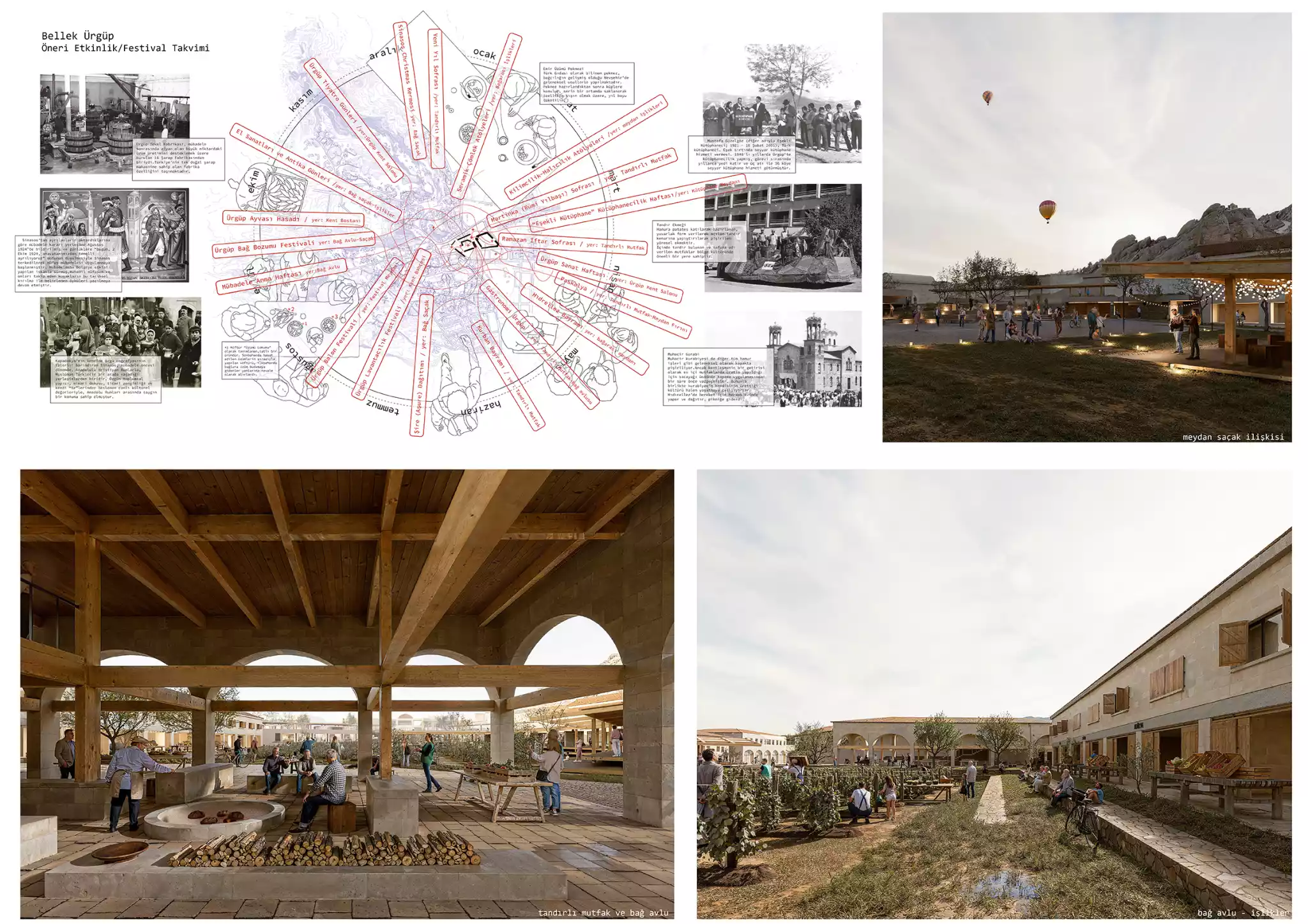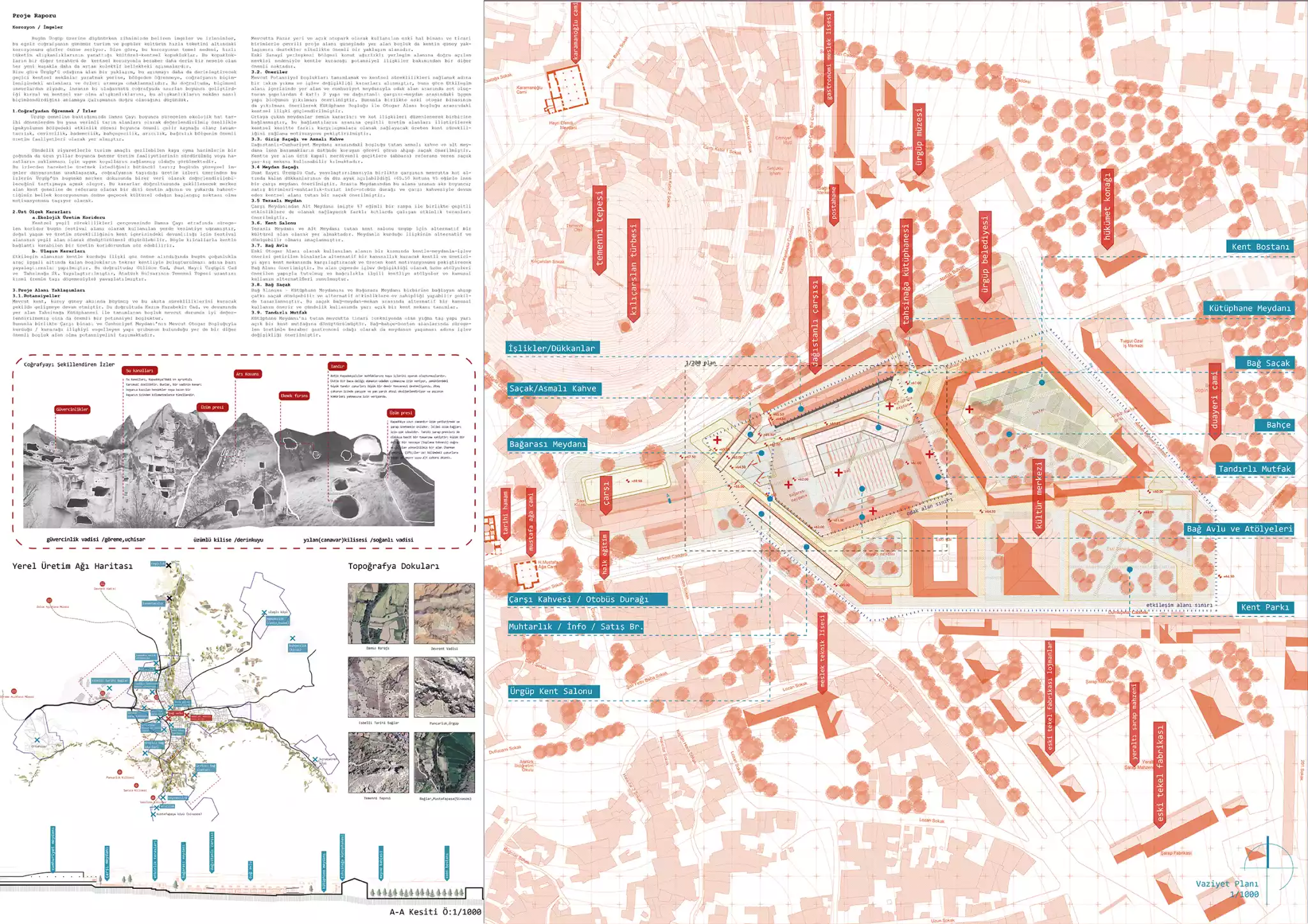 Bu izlerden hareketle üretmek istediğimiz bütüncül tavır; bugünün yüzeysel imgeler dünyasından uzaklaşarak, coğrafyanın taşıdığı üretim izleri üzerinden bu izlerin Ürgüp'ün bugünkü merkez dokusunda birer veri olarak değerlendirilebileceğini tartışmaya açmak oluyor. Bu kararlar doğrultusunda şekillenecek merkez alan kent geneline de referans olacak bir dizi üretim ağının ve yukarda bahsettiğimiz bellek korozyonunun önüne geçecek kültürel odağın başlangıç noktası olma motivasyonunu taşıyor olacak.